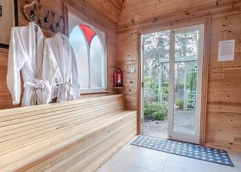 - Eight-seat hot tub and sauna